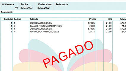 Permite insertar etiquetas de cobrado en las facturas. Incorpora una función para adaptar los formatos indicando los datos bancarios según sea la forma de pago.