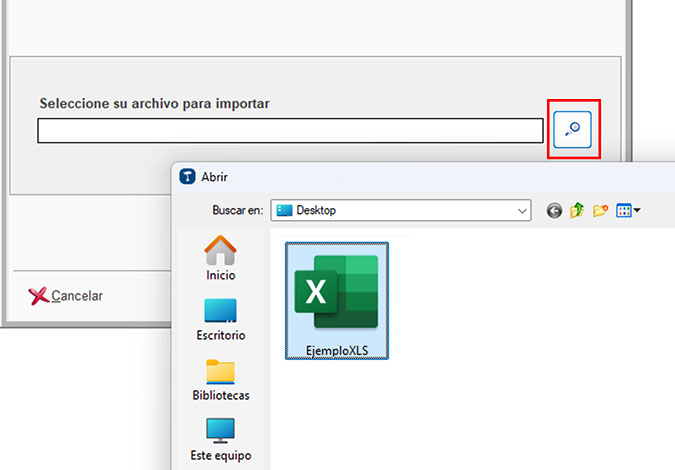 Una vez tengas preparado el programa para generar estas plantillas, selecciona el archivo a importar a ClassicGes pulsando en la lupa y elige el documento previamente preparado.